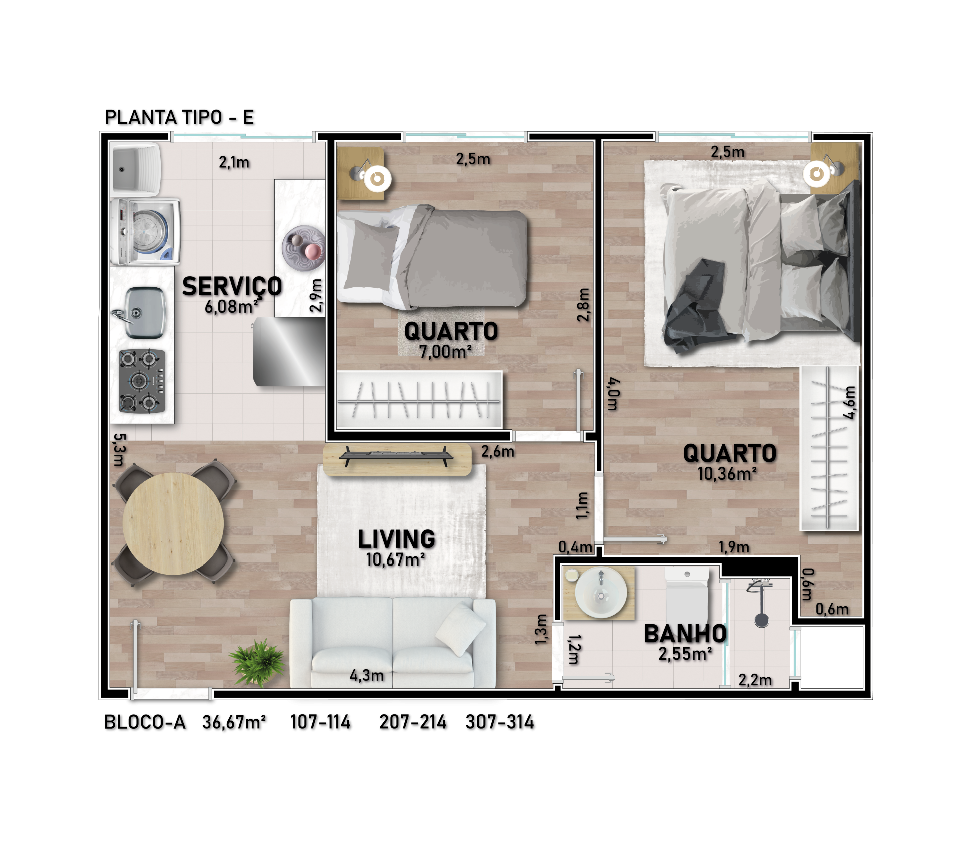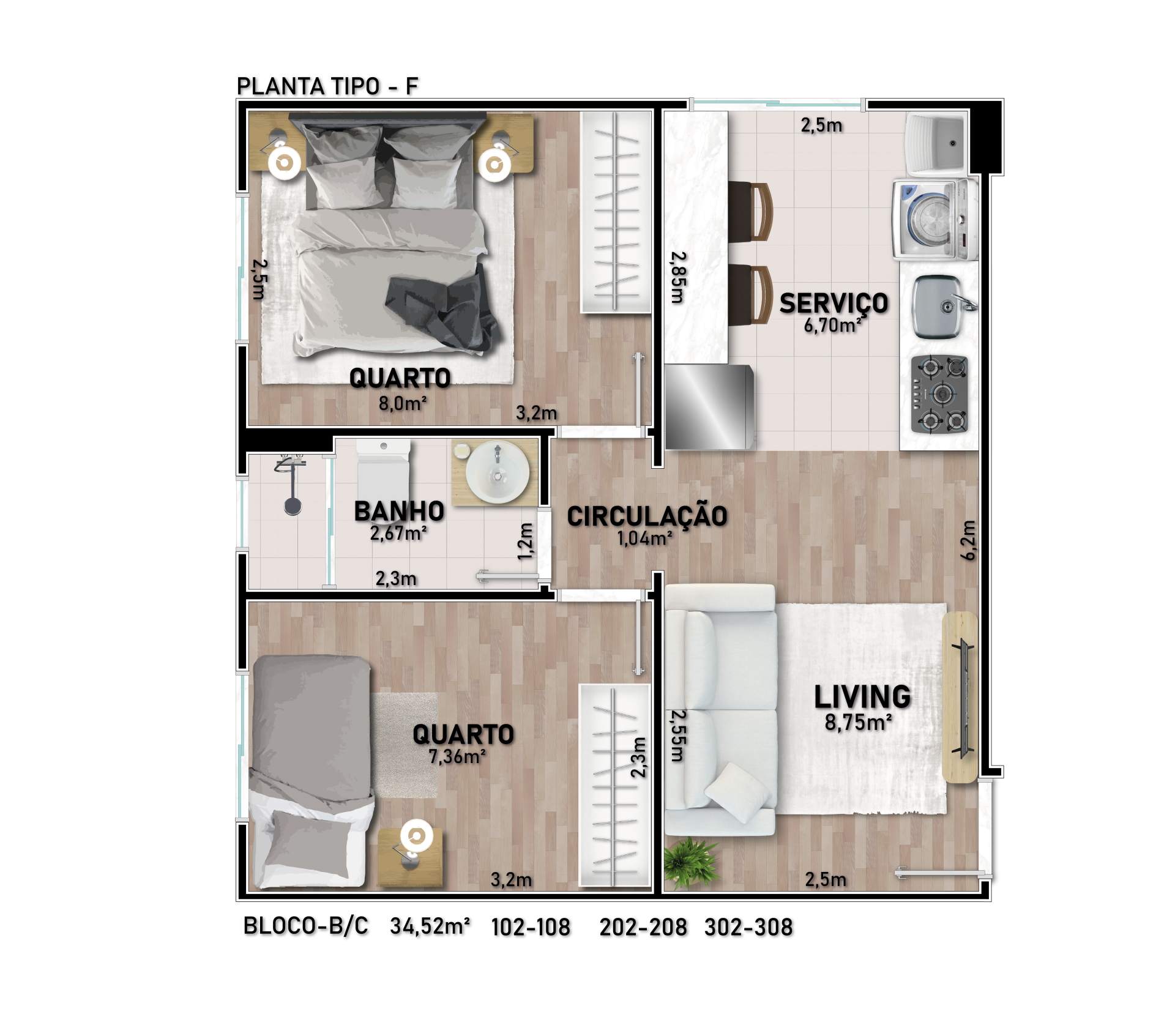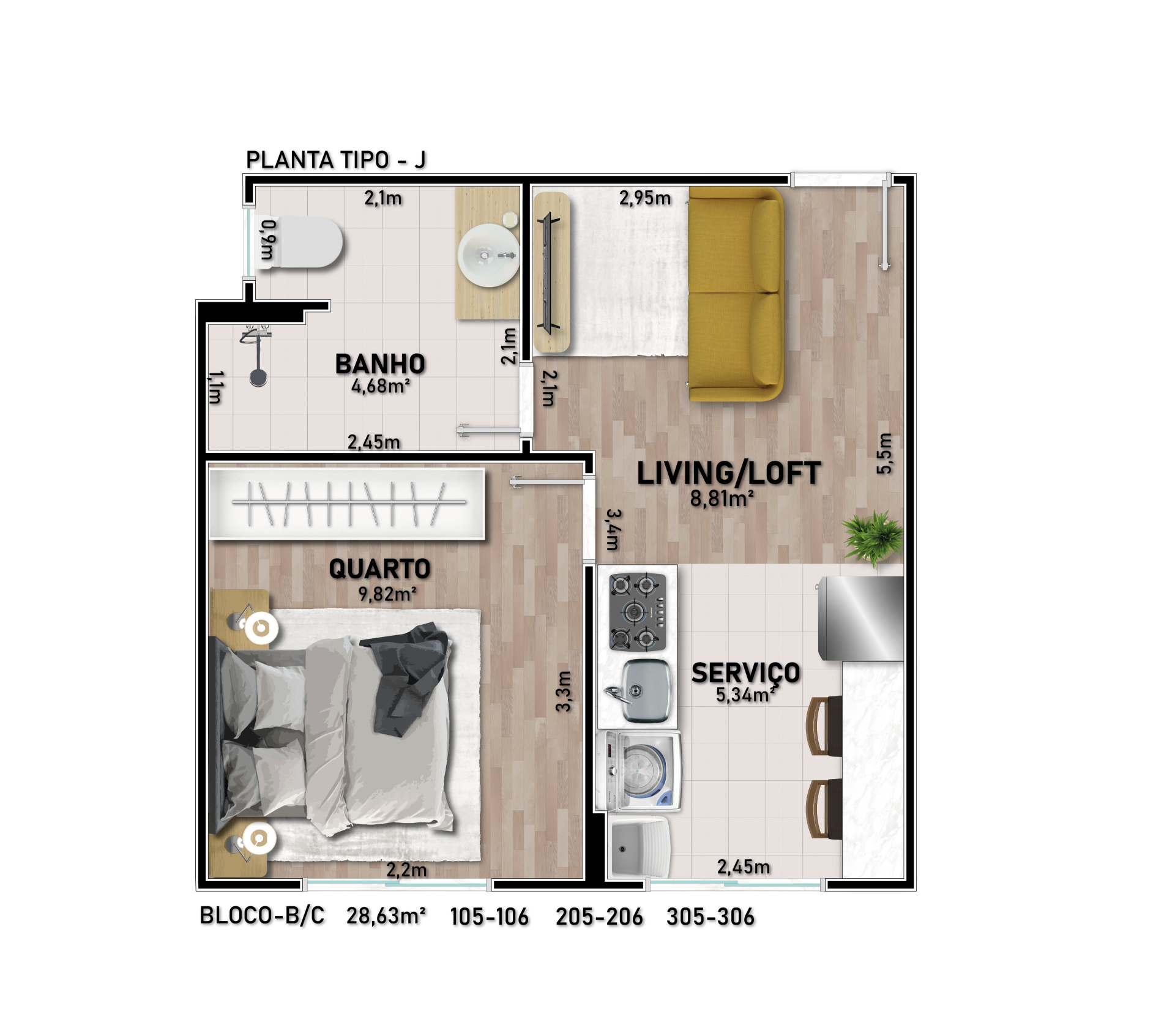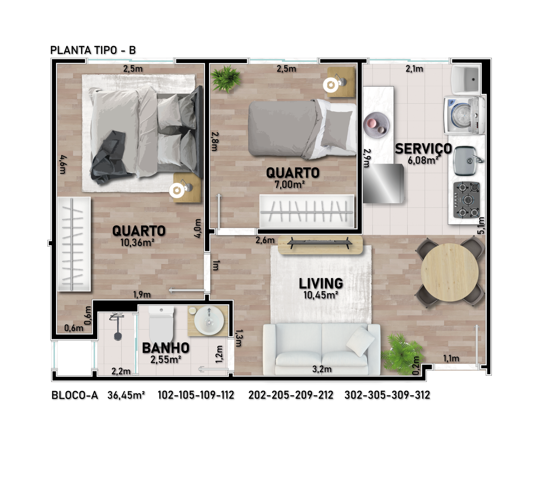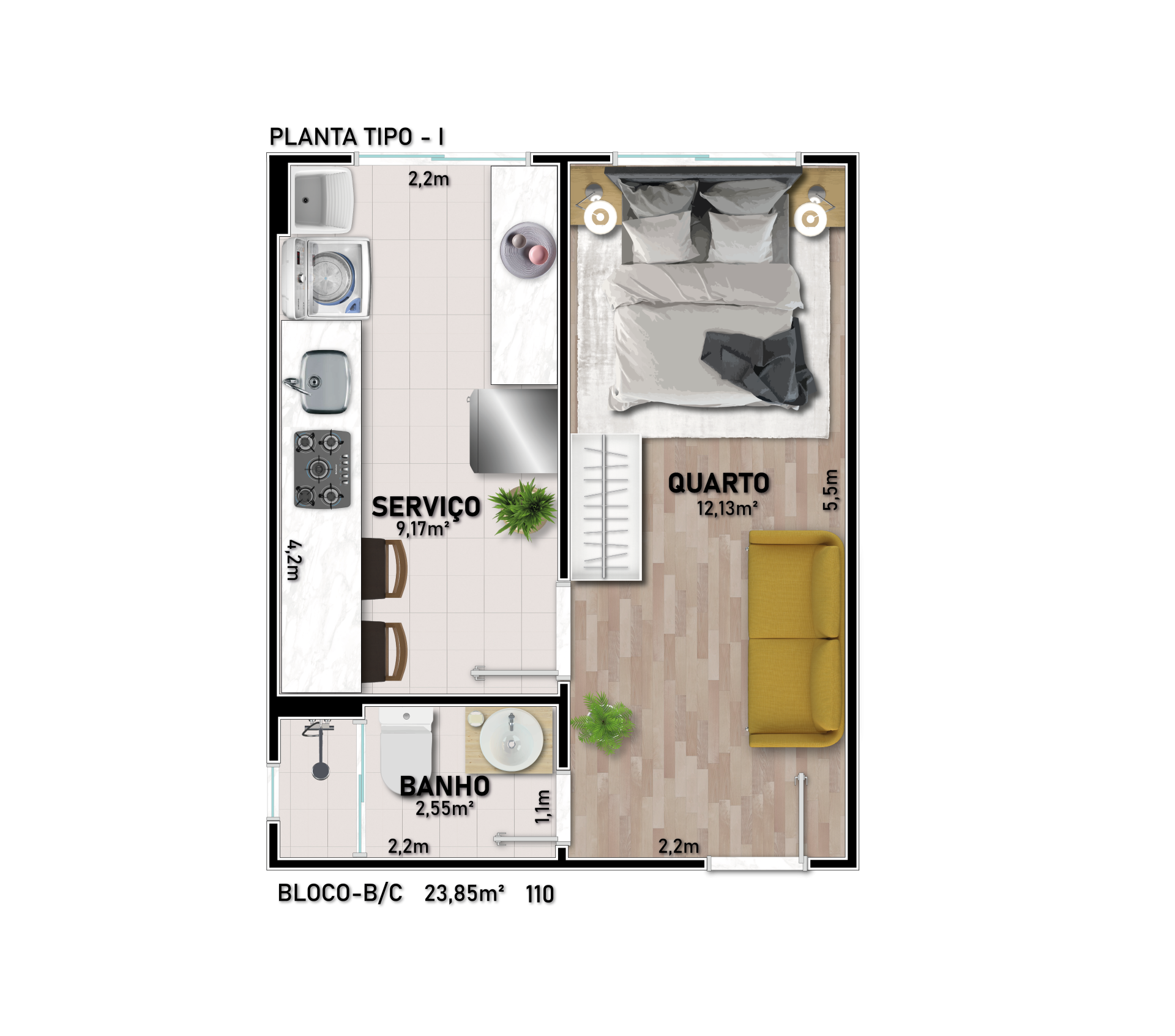 - Apartamentos com 1 ou 2 dormitórios