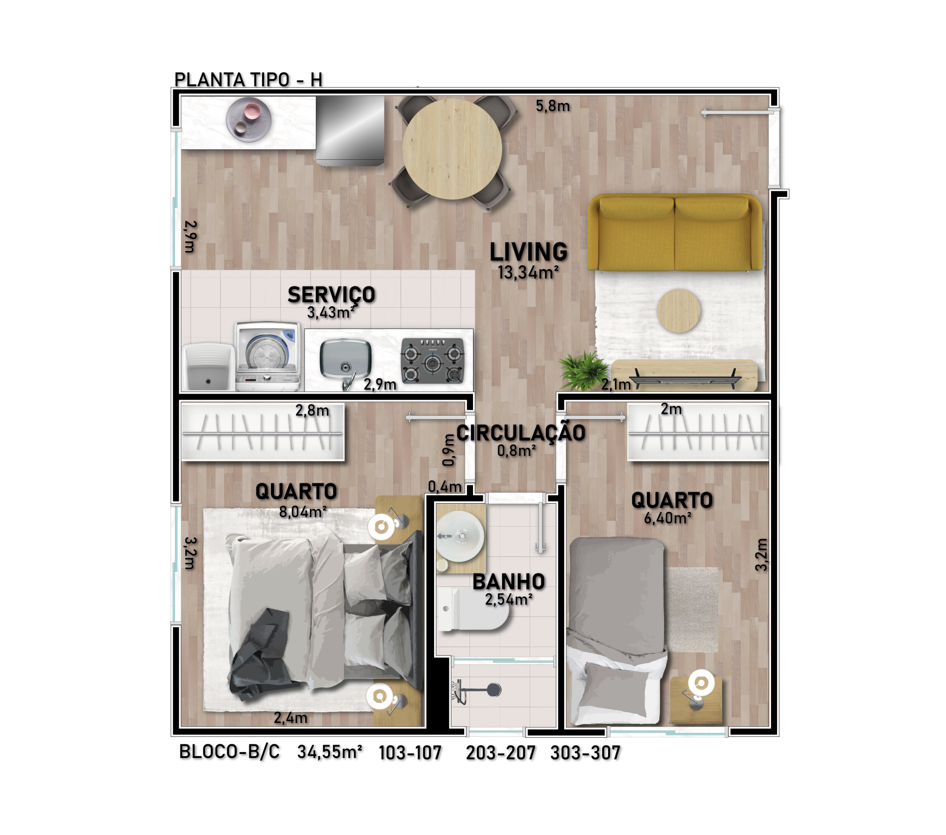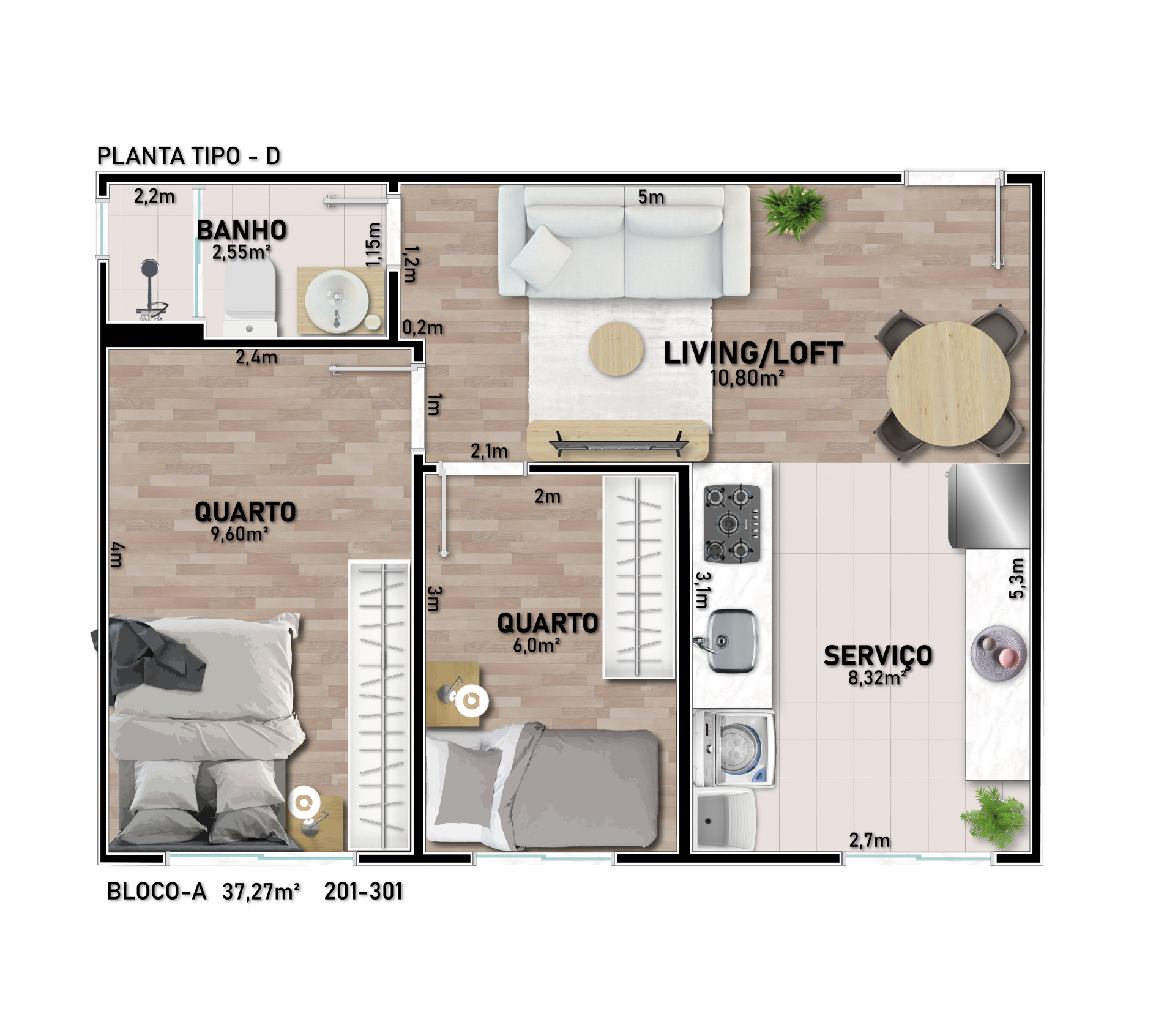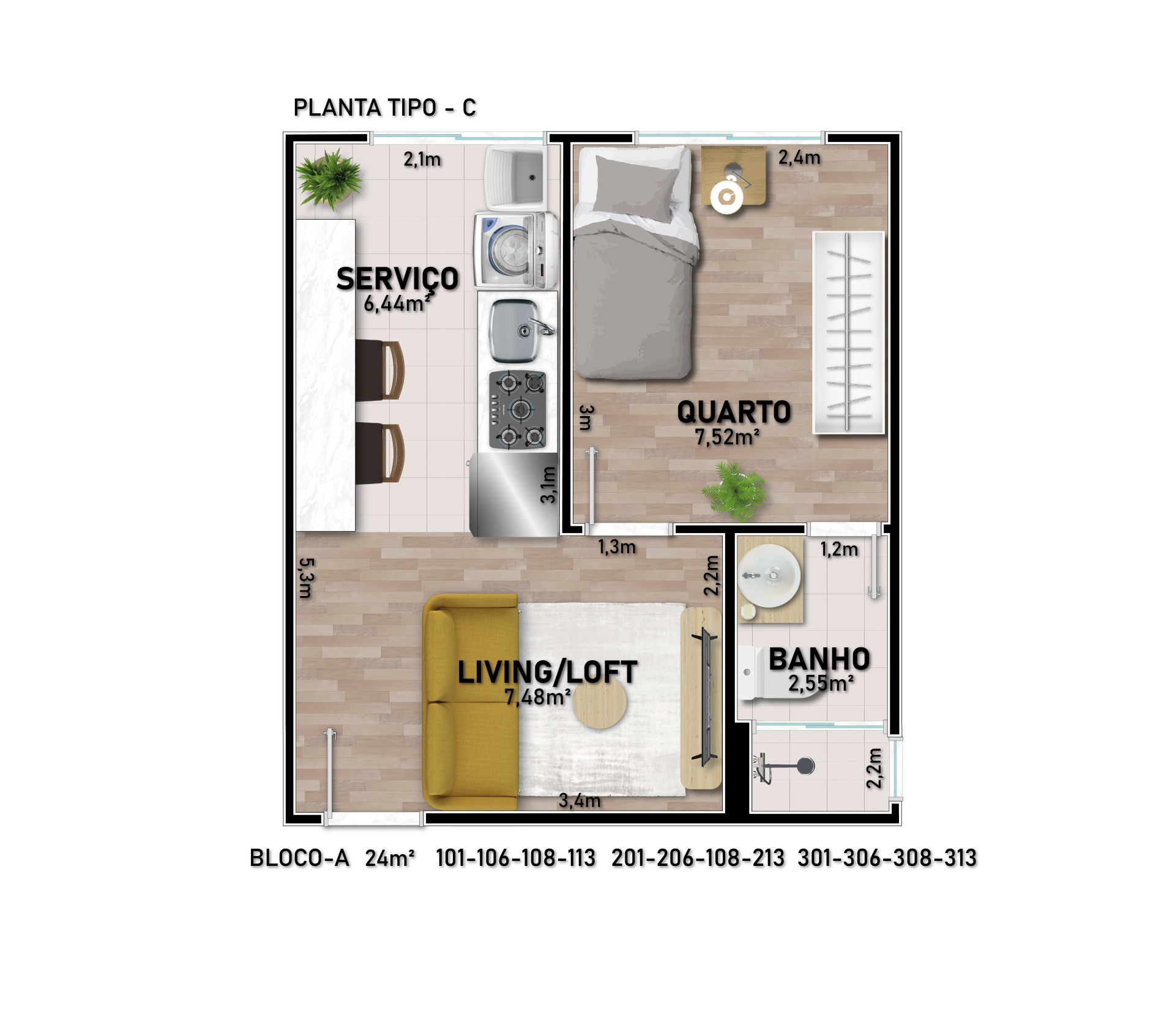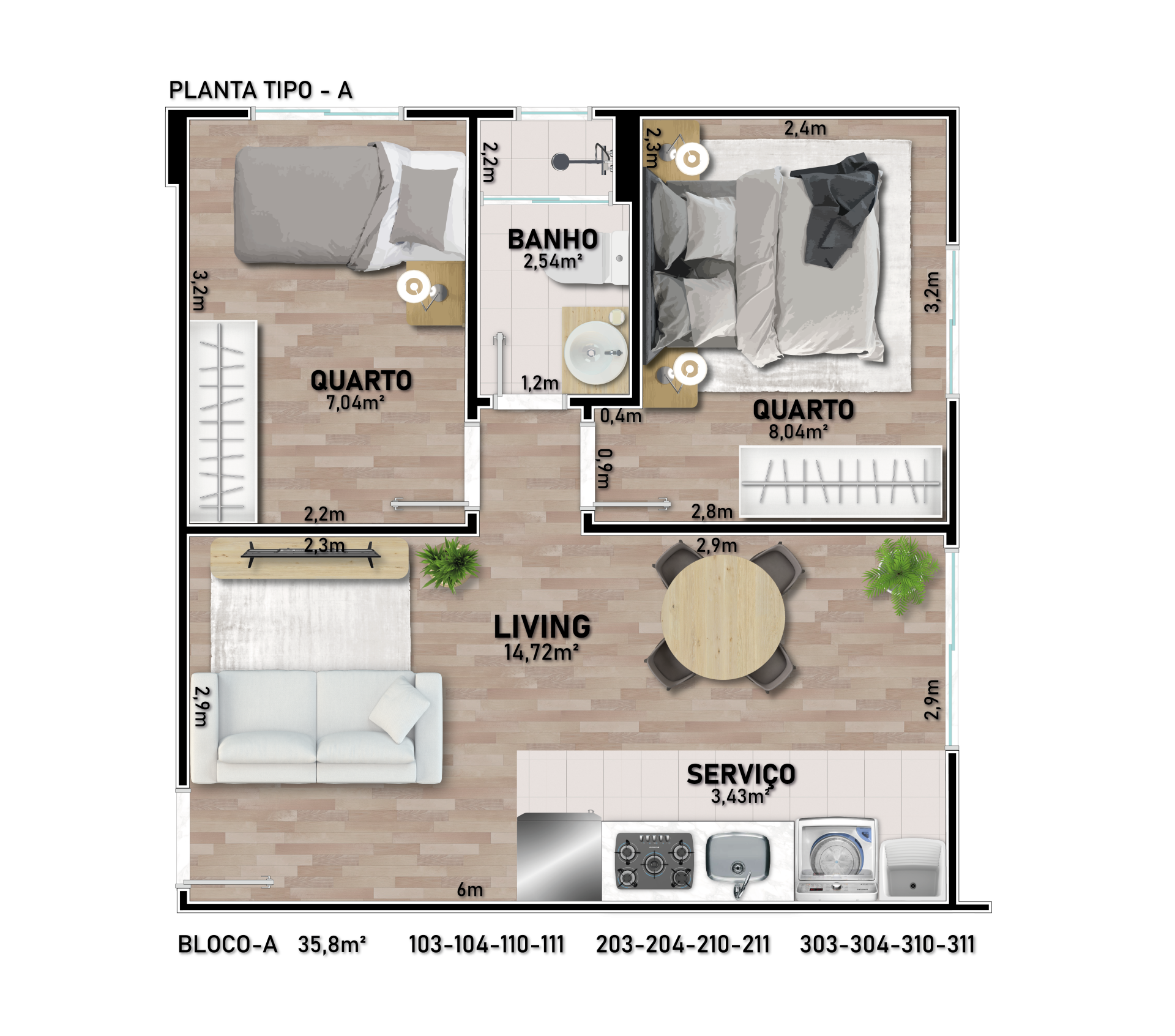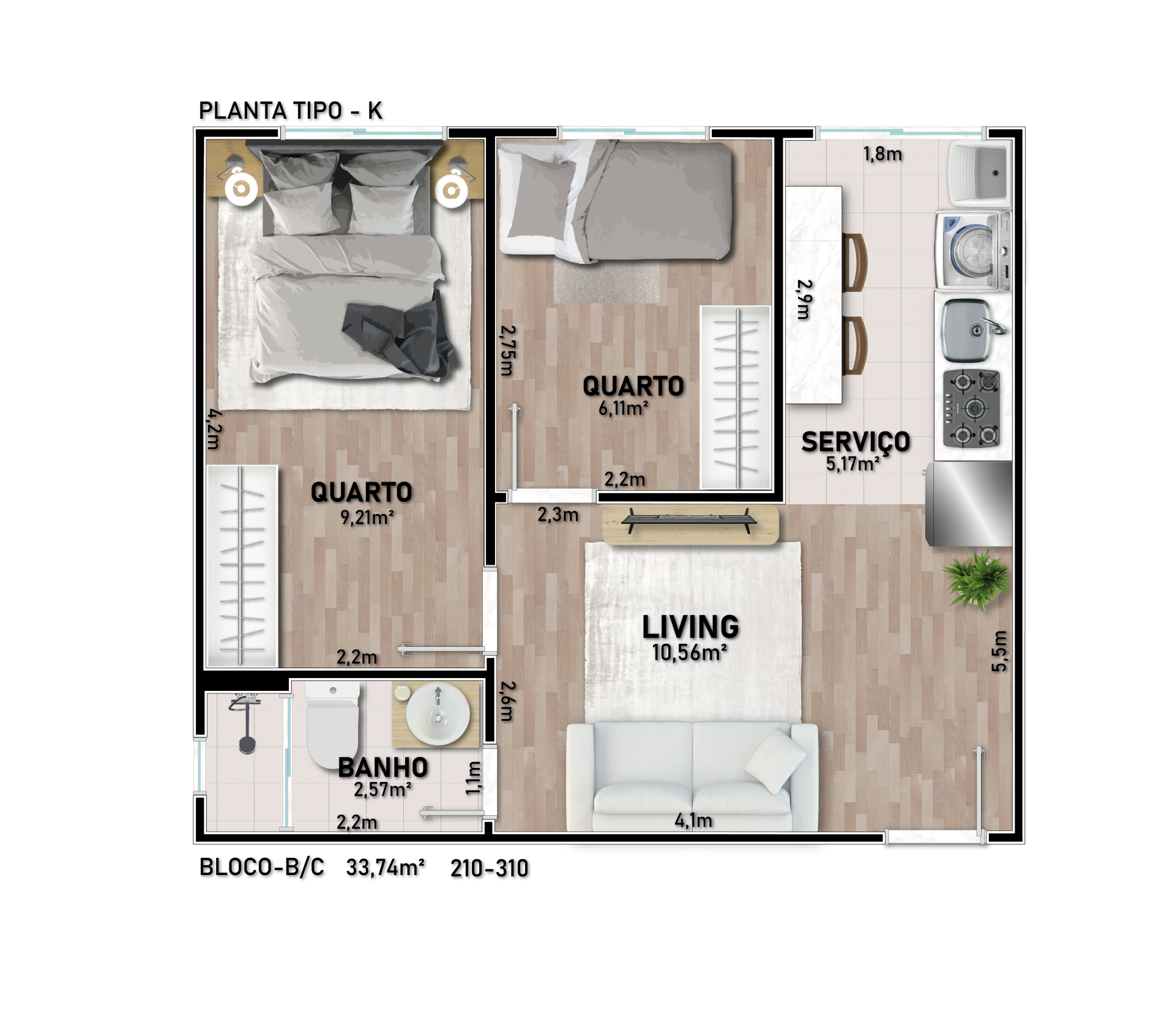 - Apartamentos com 1 ou 2 dormitórios